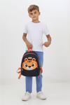 Kaplan Figürlü Siyah Erkek Çocuk Anaokulu Kreş Sırt Çantası (36x26x14 cm)