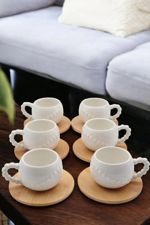 Kapris 6 Lı Bambu Tabaklı Boncuklu Kahve Fincan Takımı 40280