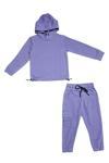 Kapşonlu Beli Lastik Detaylı Kız Çocuk Günlük Eşofman Takımı 2 İplik MNK0665 LİLA