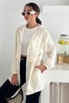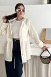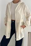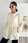 Kapşonlu Fermuarlı Bağcıklı Uzun Yağmurluk