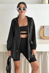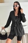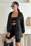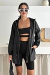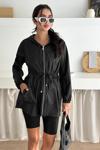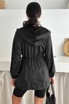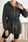Kapşonlu Fermuarlı Bağcıklı Uzun Yağmurluk