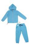 Mnk Baby&Kids Kapşonlu Fermuarlı Beli Lastik Detaylı Kız Çocuk Günlük Eşofman Takımı 2 İplik MNK0664 MAVİ