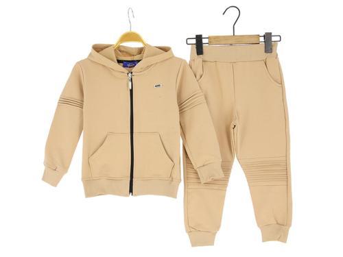 Atabay KAPÜŞONLU ARMALI DİZ DETAYLI İKİ İPLİK EŞOFMAN TAKIM - Bej - 4 Yaş - ATA30594.0-Bej-4 Yaş Bej