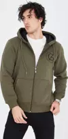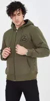 Suint Kapüşonlu Baskılı Fermuarlı Yeşil Hırka
