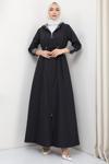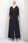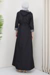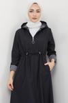 Kapüşonlu Çizgili Uzun Trençkot Siyah HM2332 Özellikleri