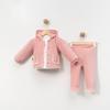 Necix's KAPÜŞONLU FİSTO DETAYLI KADİFE ÜÇLÜ ALT ÜST TAKIM - KS-25015-Pudra-18 Ay Pudra