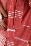 Ecocotton Arden Kadın Bornoz %100 Organik Pamuk Kenevir Karışımlı Bornoz Çizgili Hardal S