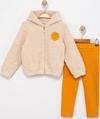 KAPÜŞONLU PELUŞ RÜZGAR GÜLÜ ÜÇ İPLİK TAYTLI ALT ÜST TAKIM - MDL2169-Hardal-4 Yaş Hardal