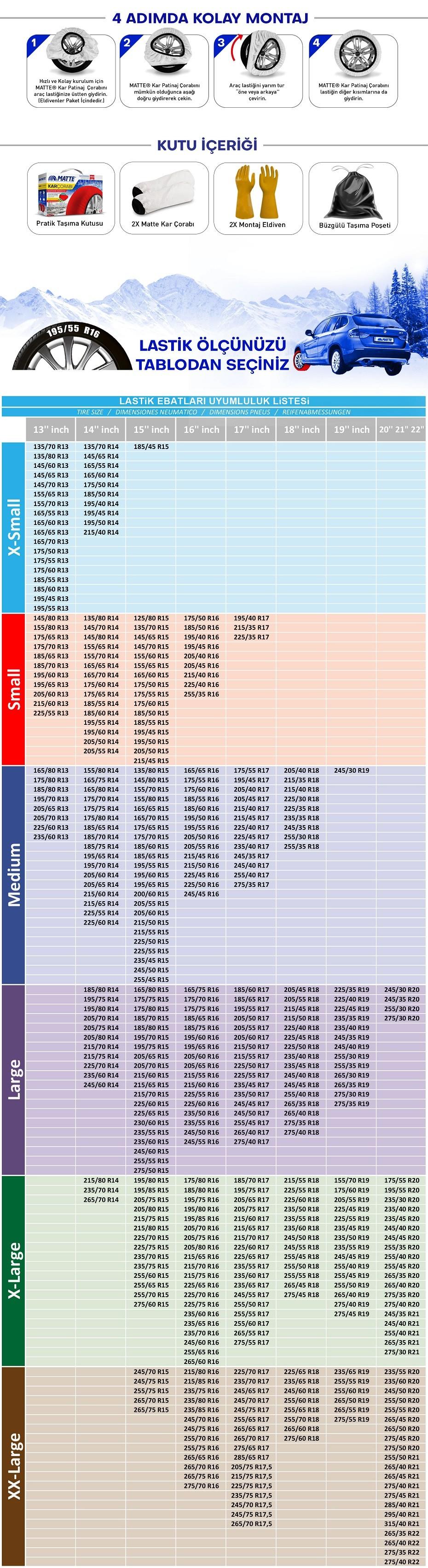 Drs Tuning Kar Çorabı Uyumlu Matte 235 65 Lastik R18 Jant Ölçülerine Uyumlu Yüksek Kaliteli Zincir Muadili Parça