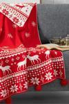 Canlı kırmızı rengiyle bu Tv battaniyesi evinize sıcaklık katarken, beyaz kar tanesi ve geyik desenleriyle yılbaşı ruhunu yansıtır. Ponpon detaylarıyla hem sevimli hem zarif bir görünüm sunar.