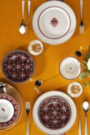 - Yuvarlak formu ile klasik ve zamansız bir görünüm sunar, her türlü sofra düzenine kolayca uyum sağlar.