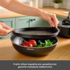 Setle beraber gelen farklı boyutlardaki (24 cm ve 26 cm) 2 adet plastik kapak sayesinde tencereleriniz aynı zamanda birer saklama kabına dönüşür. Bu sayede yemeklerinizi buzdolabında taze şekilde muhafaza edebilirsiniz.