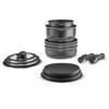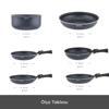 Farklı boyutlara (22 cm, 26 cm ve 28 cm) sahip 6 adet tencere-tavayla yemeklerinizi dilediğiniz gibi pişirebilirsiniz. 2 adet çıkarılabilir kulp, tüm parçalarla uyumludur ve kolayca takılıp çıkarılabilir. Kulplar, takıldığında pratik şekilde kilitlenir ve güvenli bir tutuş sağlar. Çıkarıldıklarında ise iç içe geçebilen tencere ve tavalarınız, dolaplarınızda en az yer kaplayacak forma kavuşur. Farklı boyutlardaki 3 adet silikonlu cam kapak, yemeklerinizi sıcak ve taze tutar.