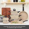 Karaca Biogranit Vincent 12 Parça Tencere Seti’nin maksimum yanmaz yapışmazlık sağlayan üstün teknolojisi ile yemeklerinizi kolayca tam kıvamında pişirebilirsiniz. Çizilmelere karşı ultra dayanıklı Biogranit Set, kulpları ile kullanımı kolaydır. Isıya dayanıklı özel cam kapağı ile pişirme sürecinin kolayca takip edebilirsiniz. Geniş set içerisinde; 18 ve 22 cm’lik iki ayrı derin tencere, 26 cm’lik karnıyarık tenceresi, 26 cm’lik tava, 14 cm’lik tencere, 14 cm’lik sütlük ve 14 cm’lik tava bulunur. Bulaşık makinasında yıkanabilen yapısı ile oldukça kullanışlıdır. Rengi ile mutfağınızla eşsiz bir uyum yakalar.