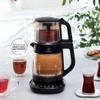 0,8 litre kapasiteli cam demliği ve 1,5 litre kapasiteli cam su haznesi sayesinde aileniz ve misafirlerinizle çayın keyfine varabilirsiniz.