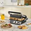 - 3in1 çok amaçlı kullanımı sayesinde 6 adet tostu tek sferde hazırlayabilir, 230 derece sıcakta mühürleme özelliği ile lezzetli ızgaralar pişirebilir ve 180 derece açılma özelliği ile barbekü keyfi yapabilirsiniz.