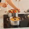 Karaca Fiorino Compact Tencere Seti, kompakt boyutları ve şık tasarımıyla mutfaklarınıza fonksiyonellik ve estetik katıyor. İster küçük porsiyon yemekler hazırlayın, ister sos ve garnitür pişirin; bu set her ihtiyacınıza cevap veriyor.
