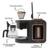 Karaca Hatır Plus Mod’un cam demliğinde 5 fincan filtre kahve veya çay demleyebilir, eş zamanlı olarak cezvesinde ise 5 fincan Közde Türk Kahvesi pişirebilir veya sütlü içecekler hazırlayabilirsiniz.