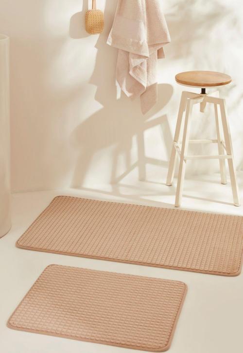 Karaca Home Ekose Embos 2'li Banyo Paspası Kahverengi