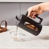 Cam karafı çevreleyen koruma kabı, kırılmaları önler ve zeminlerle ısı temasını engeller. Koruma kabı ile karaf birbirinden ayrılarak temizliğe hazır hale gelir.