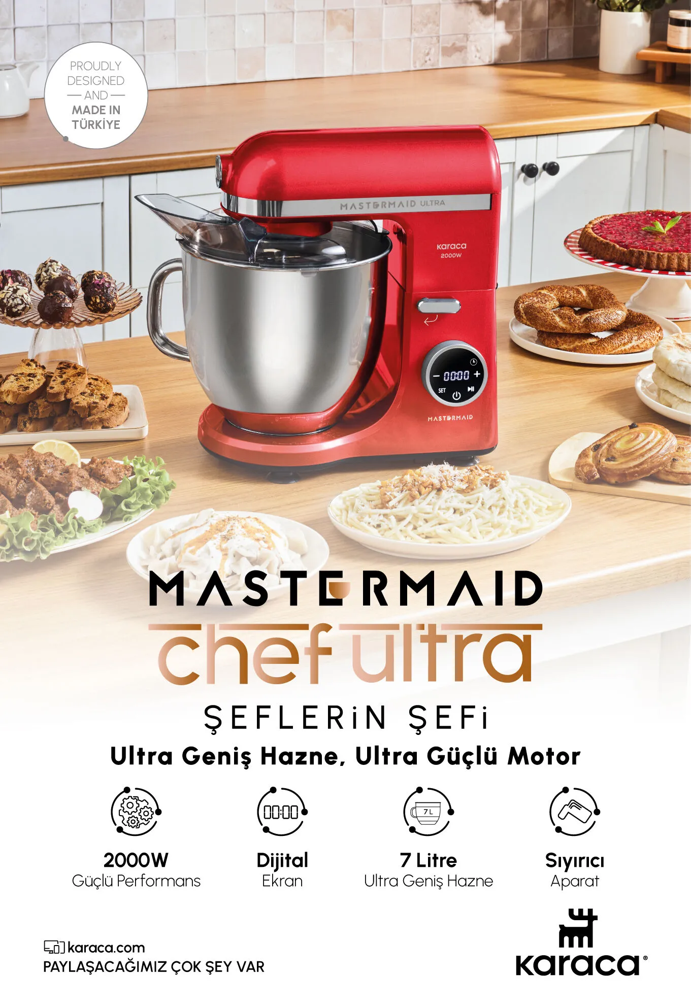 Karaca Mastermaid Chef Ultra D2000W Dijital Ekranlı Hamur Yoğurma Makinesi Tiffany 7L