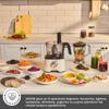 - 10 farklı aparatı ile doğrama, karıştırma, öğütme, rendeleme, dilimleme, yoğurma ve çırpma fonksiyonlarının hepsini bir arada sunar.