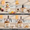 - 10 farklı aparatı ile doğrama, karıştırma, öğütme, rendeleme, dilimleme, yoğurma ve çırpma fonksiyonlarının hepsini bir arada sunar.