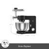 2000W ekstra güçlü motoruyla çırpma, karıştırma ve yoğurma işlemlerini ideal şekilde yapar. Bunun yanında Kıyma Çekme, Sucuk - Sosis, ve içli Köfte aparatları olmak üzere 3 farklı fonksiyonuyla kullanım çeşitliliği sunar. Yörüngesel hareket etme özelliği; yumurta çırpma, sos hazırlama, ekmek yoğurma ve puding- kek hazırlamak için en ideal karıştırmayı yapar. Sıçrama önleyici şeffaf kapağı sayesinde tüm bu işlemler sırasında tezgahınız temiz kalır. 7 litre kapasiteli ultra geniş paslanmaz çelik haznesi ve metal iç aksamları sayesinde dayanıklı ve uzun ömürlüdür. 6 kademeli hız ayarlı ile tüm işlemleri ihtiyacınız olan hızda yapabilirsiniz.