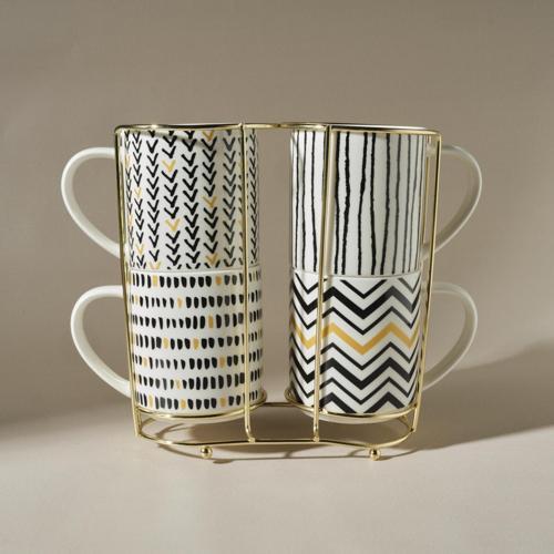 Karaca Nomar 5 Parça Standlı Porselen Kupa/Mug Seti 320 Ml