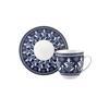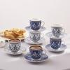 Karaca Peyker 6 Kişilik Kahve Fincan Seti’nin tasarımında kullanılan mavi ve beyazın muhteşem uyumunu sofralarınıza getiriyor. Fincan takımı içinde 6 adet fincan ve 6 adet fincan altlığı bulunur. Fincanların hacmi 85 ml’dir. Yüksek kaliteli ve dayanıklı porselen malzemelerden üretilmiştir.