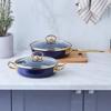 Karaca Piraye Kapaklı Emaye Tava Sahan Seti Lacivert