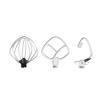 Balon çırpıcı ile sıvı karışımları hızlı ve homojen şekilde karıştırmanızı sağlarken, elde edilmek istenen hamur düzeyine göre kullanılabilecek düz karıştırıcı ya da hamur kancası ile mükemmel sonuçlar elde etmenizi sağlar.