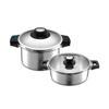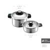 6 ve 4 litre olarak iki ayrı tencereye sahip olan Quick&Safe Düdüklü Tencere Seti, uyumlu çift kapağa sahiptir.