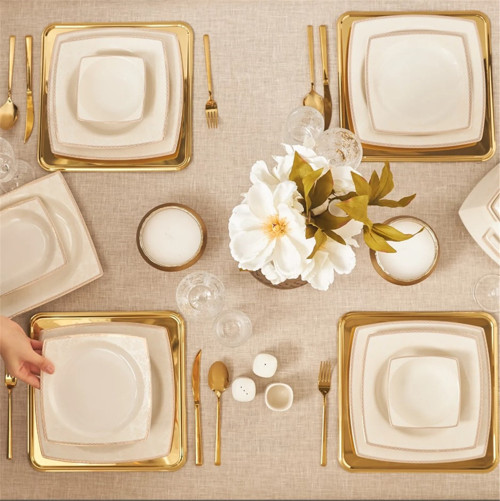 Karaca Raisa Cream 60 Parça 12 Kişilik Porselen Platin Yemek Takımı
