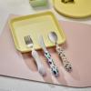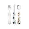 Set, üç parçadan oluşuyor: çatal, kaşık ve bıçak – çocukların kendi kendine yemek yeme sürecini destekliyor.