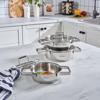 Valora 6 Parça Sahan Set, ısıyı her tarafa eşit dağıtarak yemeklerin lezzetini artırır. Sağlıklı ve uzun ömürlü bir kullanım sunan paslanmaz çelik yüzeyi,ısıyı uzun süre muhafaza eder.Geniş set içeriği,ısıya dayanıklı özel kapağı ve şık metal kulpları ile oldukça kullanışlıdır.