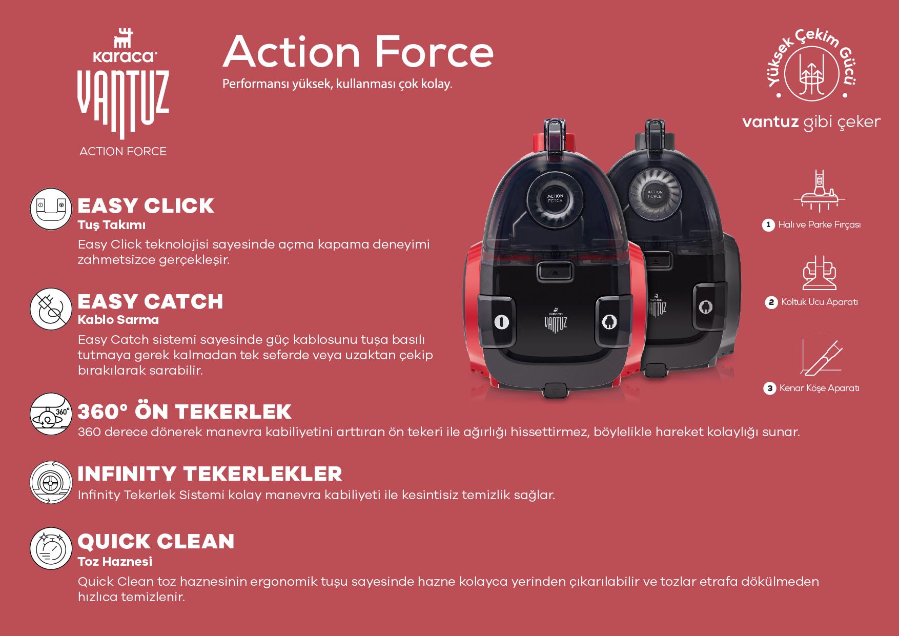 Vantuz Action Force Kırmızı Elektrikli Süpürge
