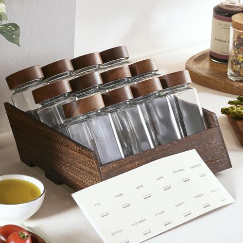 Karaca Vento 12'li Etiketli Ahşap Standlı Baharat Takımı