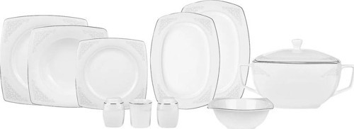 Karaca Zeyna Cream 60 Parça 12 Kişilik Kare Yemek Takımı Set İçeriği 12 Adet Yemek Tabağı 22 cm 12 Adet Servis Tabağı 26 cm 12 Adet Pasta Tabağı 21 cm 12 Adet Kase 14 cm 3 Adet Küçük Kayık Tabak 23 cm 1 Adet Büyük Kayık Tabak 35 cm 2 Adet Tuzluk 2 Adet Biberlik 2 Adet Kürdanlık 1+1 Adet Çorbalık ve Kapağı Malzeme: Porselen 2 Yıl Garantilidir Özellikler Elde yıkanması tavsiye edilir. Mikrodalga kullanımına uygun değildir.
