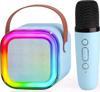 Karaoke Kablosuz Hoparlör Mikrofonlu Rgb Işıklı Bluetooth Speaker Tf Kart/usb Mavi