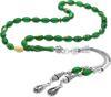 Gümüş Hediye Al Kararmaz Metal 2li Kamçı Püsküllü Arpa Kesim Bilek Boy Yeşil-Beyaz Ateş Kehribar Tesbih
