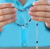 Tesbihane Kararmaz Metal Arnavut Püsküllü Kapsül Kesim Şeffaf Mavi-Beyaz Bilek Boy Ateş Kehribar Tesbih
