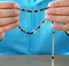 Gümüş Hediye Al Kararmaz Metal Arnavut Püsküllü Kesme Kesim Mavi-Beyaz Bilek Boy Ateş Kehribar Tesbih
