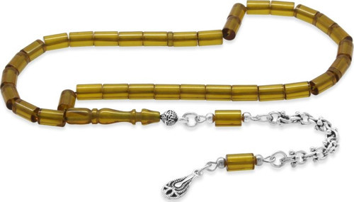 Ateş kehribar, bilinenin aksine kehribar tozlarının işlenmesi sonucu elde edilen bir madde değildir. Kehribar taşı ile başka maddelerin etkileşime girmesi ile ortaya çıkan bu değerli maddenin üretimine ilk olarak 1700’lü yıllarda başlanmıştır. Ateş kehribar, günümüzde gerçek kehribarlar kadar değerlidir. Maliyetinden dolayı gerçek kehribarlara tercih edilmektedir. En çok talep gören tesbih türüdür.