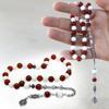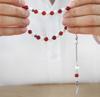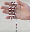 Tesbihane Kararmaz Metal Arnavut Zincir Püsküllü Küre Kesim Kırmızı Beyaz Jade Akik Doğaltaş Taraftar Tesbih M1