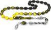 Tesbihane Kararmaz Metal Halat Püsküllü Arpa Kesim Süzme Sarı-Siyah Ateş Kehribar Tesbih