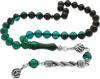Gümüş Hediye Al Kararmaz Metal Halat Püsküllü İstanbul Kesim Süzme Turkuaz-Siyah Ateş Kehribar Tesbih