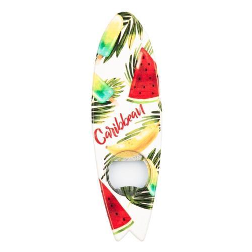 İster Karayipler seyahatiniz sonrası hatıra veya hediye olarak, isterseniz evinize ve iş yerinize dekoratif ve işlevsel amaçlı kullanabileceğiniz Karayipler temalı sörf tahtası şeklinde magnet şişe kapağı açacağı.