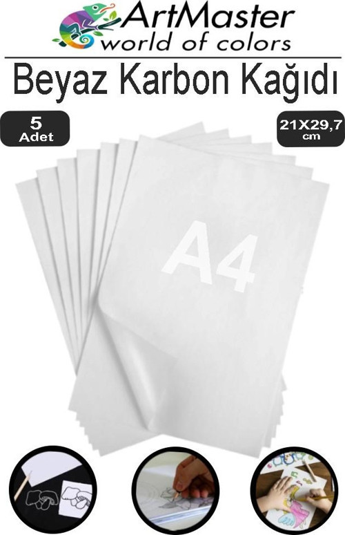 Ürün Adı: Artmaster Karbon Kağıdı A4 Beyaz 5 Adet 21x29,7 cm Transfer Kağıdı Kopya Kağıdı Renkli Karbon Kağıdı
