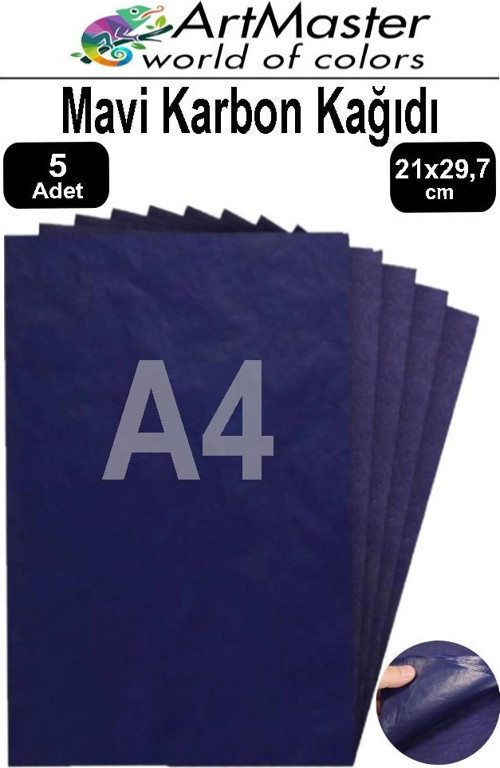 Ürün Adı: Artmaster Karbon Kağıdı A4 Mavi 5 Adet 21x29,7 cm Transfer Kağıdı Kopya Kağıdı Renkli Karbon Kağıdı Ahşap Seramik Metal Cam